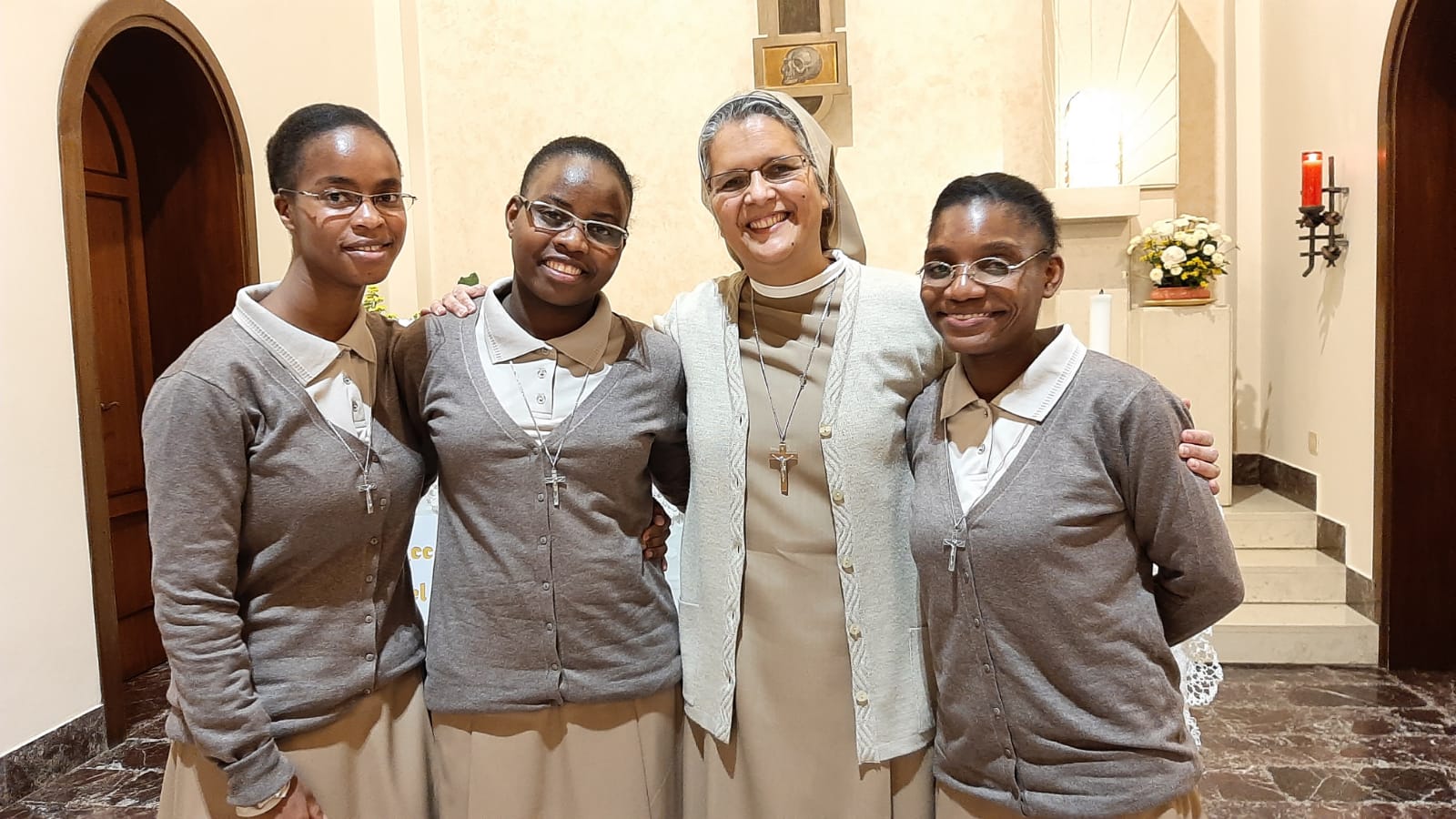 Le Sorelle si rallegrano per l'entrata in Noviziato di tre postulanti provenienti dall'Angola: Josefa Francisco Sebastião, Sara Cassinda Dumba, e Angelina Nacutala Venâncio. Il rito di entrata in Noviziato è stato celebrato nella Casa Madre “Santa Toscana”, il 7 dicembre 2021, ai Primi Vespri della Solennità dell’Immacolata. Nella stessa celebrazione Sor. Veronica Sarca e Sor. Inês dos Santos Manuel hanno rinnovato la loro Professione Annuale. Alla celebrazione presieduta dal Casante, padre Miguel, hanno partecipato molti confratelli PSDP e Sorelle delle comunità vicine. L'8 dicembre, anche sor. Ecaterina Iştoc, nella comunità “Buna Vestire” a Racaciuni (Romania) e Sor. Fátima Noloti Wambo, nella comunità del Kenya, rinnoveranno la loro Professione Annuale.